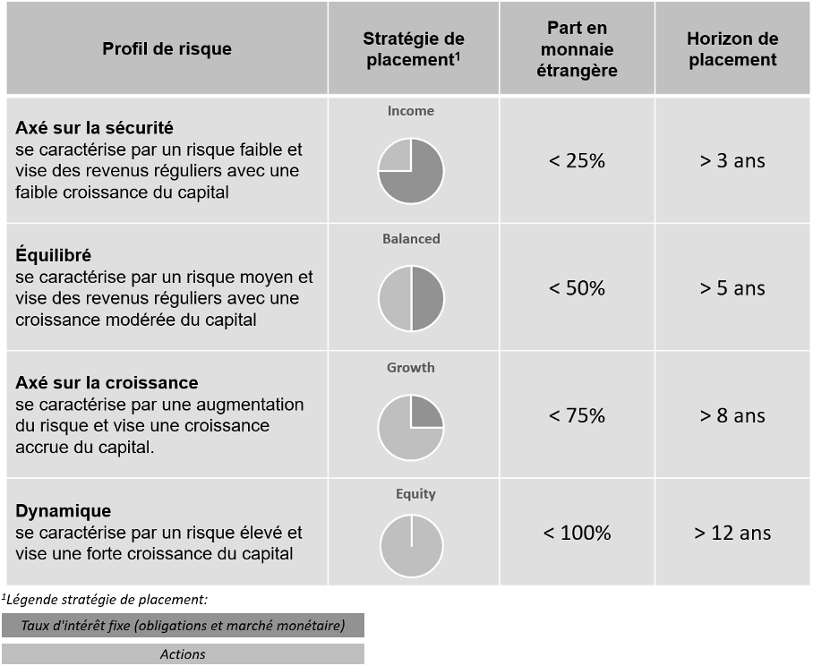 Il en découle l’une des quatre stratégies de placement : Income, Balanced, Growth et Equity.